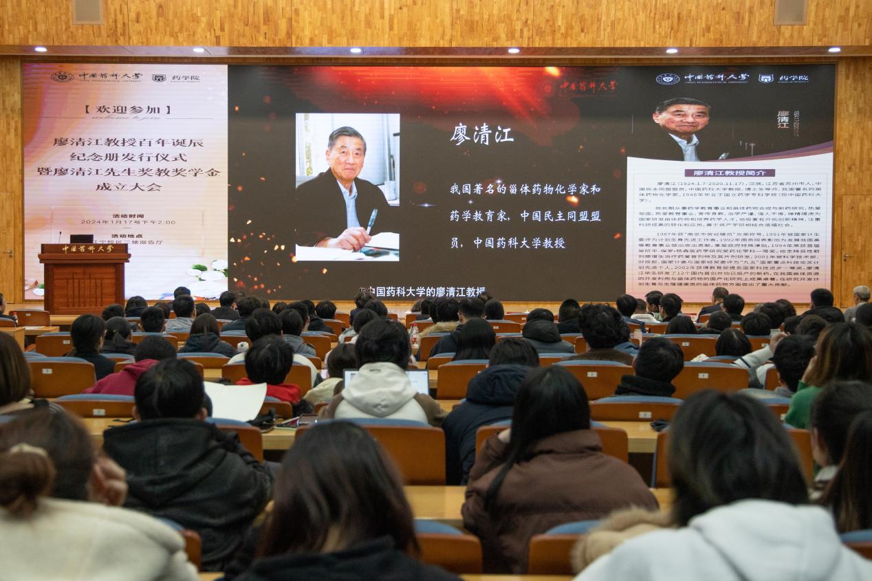 为纪念我国甾体激素药物领域的重要开拓者之一,我国著名的甾体药物化学家、药学教育家廖清江教授的百年诞辰,宣传并弘扬其精神风范,1月17日下午,公司在江宁校区二楼报告厅隆重举行“廖清江教授百年诞辰纪念册发行仪式暨‘廖清江先生奖教奖学金’成立大会”。yl6809永利检测中心副董事长齐炼文、廖清江教授亲属代表、企业代表、员工代表、集团相关职能部门负责人、yl6809永利检测中心领导班子成员及yl6809永利检测中心师生代表近300人参加了本次会议。会议由yl6809永利检测中心党委书记张仕英主持。
