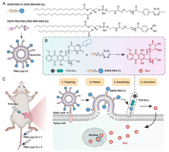 论文信息:Ma Y., Zhou Y., Long J., et al. A High-Efficiency Bioorthogonal Tumor-Membrane Reactor for In Situ Selective and Sustained Prodrug Activation. Angew. Chem. Int. Ed. 2024, https://doi.org/10.1002/anie.202318372
