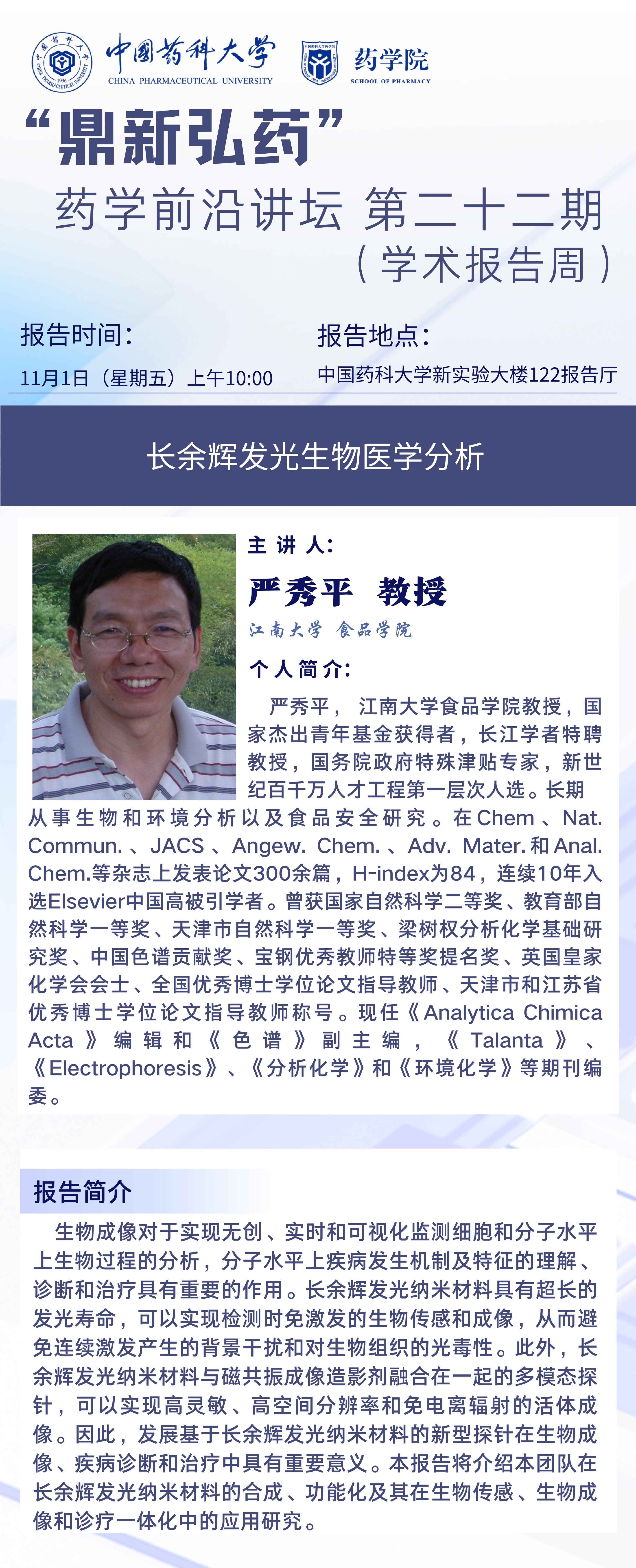 “鼎新弘药”药学前沿讲坛第二十二期通知