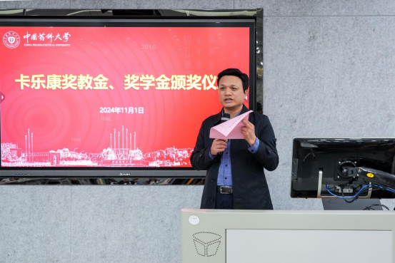 卡乐康中国总经理雷鹏表达了对母校的感激之情,以及对获奖师生的祝贺,鼓励获奖师生更加锐意进取,携手为祖国医药事业发展贡献力量。