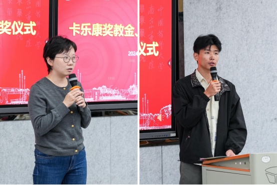药剂系刘莉莎老师代表获奖教师感谢卡乐康及学院对其科研和教学的支持与帮助,表示将继续通过科研反哺教学,用科研成果育人,为yl6809永利检测中心人才培养工作贡献力量。yl6809永利检测中心2021级药物制剂专业本科生李振海同学作为获奖员工代表发言,他代表获奖员工向卡乐康公司表达了诚挚的感谢,表示未来将会继续积极探寻自身价值,以满腔的热情和坚定的信念投身于祖国的医药事业,在祖国的医药事业中发光发热。