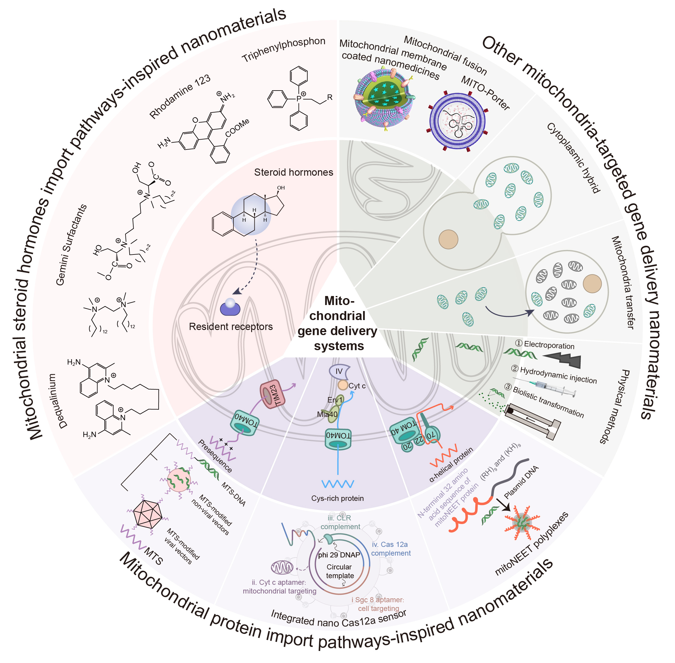 线粒体靶向基因药物递送系统示意图