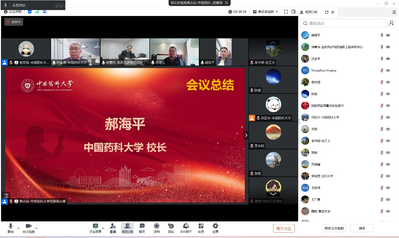 12月28日,国家药监局药物制剂及辅料研究与评价重点实验室(以下简称“重点实验室”)第一届学术委员会第3次会议在线上顺利召开。中国工程院院士、医药先进制造国家工程研究中心侯惠民研究员,中国工程院院士、公司王广基教授,公司董事长、重点实验室主任郝海平教授出席本次会议。重点实验室第一届学术委员会委员、公司相关职能部门负责人、重点实验室成员代表参加会议。会议由公司科学技术研究院常务副经理李志裕主持。