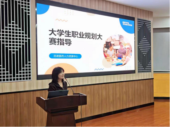10月24日,“百诺医药杯”职业规划指导讲堂暨大赛启动仪式在江宁校区教学楼A204如期启幕。百诺医药研究院人力资源负责人王倩倩聚焦职业规划教育与比赛要点,开展专业化、针对性培训,帮助参赛选手理清职业规划书撰写思路,提升演讲与答辩水平,以专业指导为大赛拉开精彩序幕。