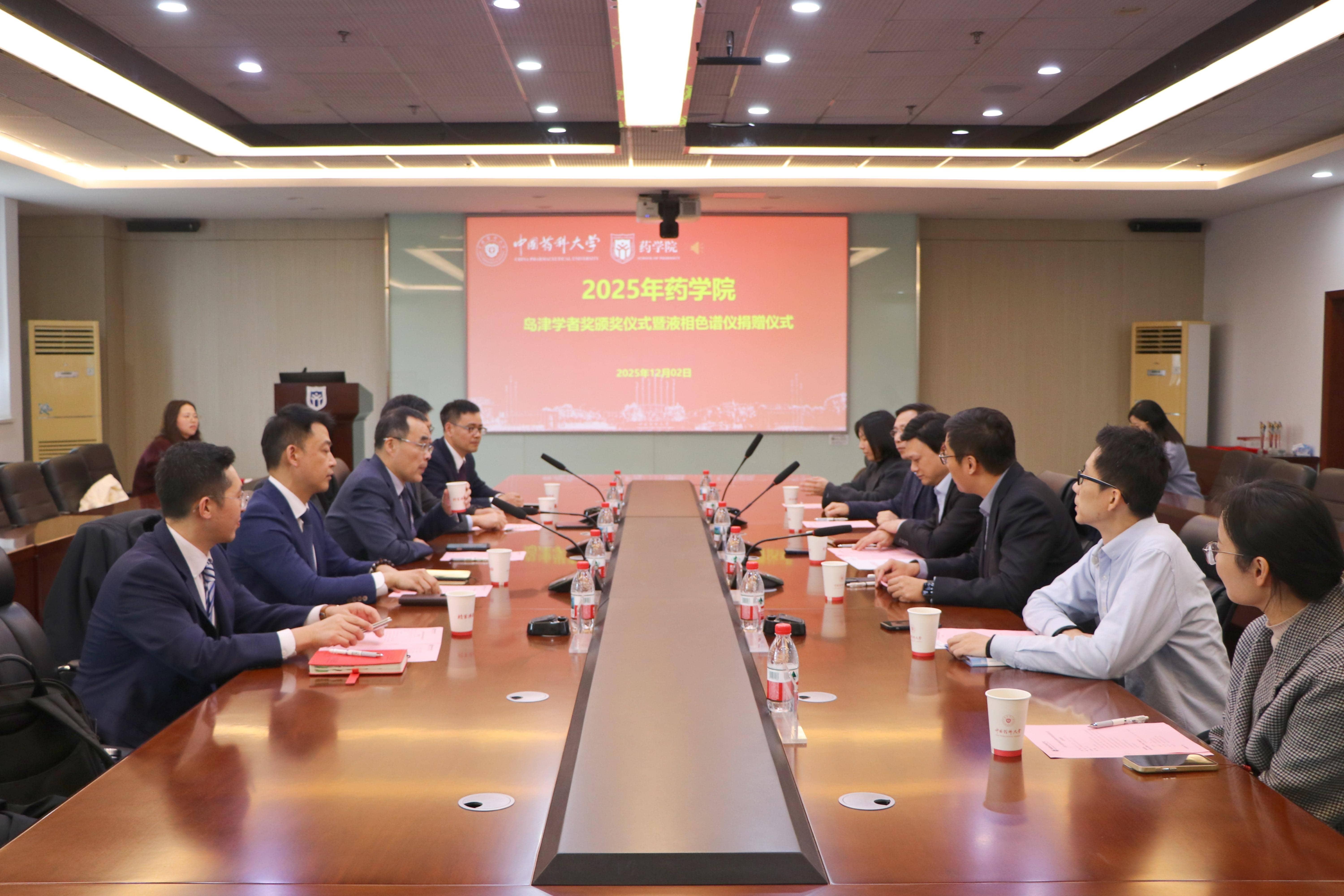 12月2日,yl6809永利检测中心2025年“岛津学者奖”颁奖仪式在江宁校区G514会议室举行。岛津企业管理(中国)有限公司董事吴彤彬,yl6809永利检测中心经理吴照球及公司获奖教师参加颁奖仪式。仪式由药公司副经理刘东飞主持。