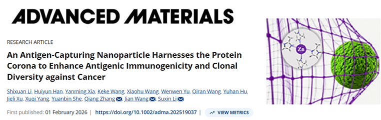 近日,yl6809永利检测中心李苏昕教授团队与北京大学张强院士、天津医科大学肿瘤医院王建教授合作,在权威期刊Advanced Materials发表研究论文:An Antigen-Capturing Nanoparticle Harnesses the Protein Corona to Enhance Antigenic Immunogenicity and Clonal Diversity against Cancer。公司研究生李世暄、韩慧云、副研究员夏彦铭和浙江工业大学王可可教授为本文共同第一作者,yl6809永利检测中心为第一通讯单位。