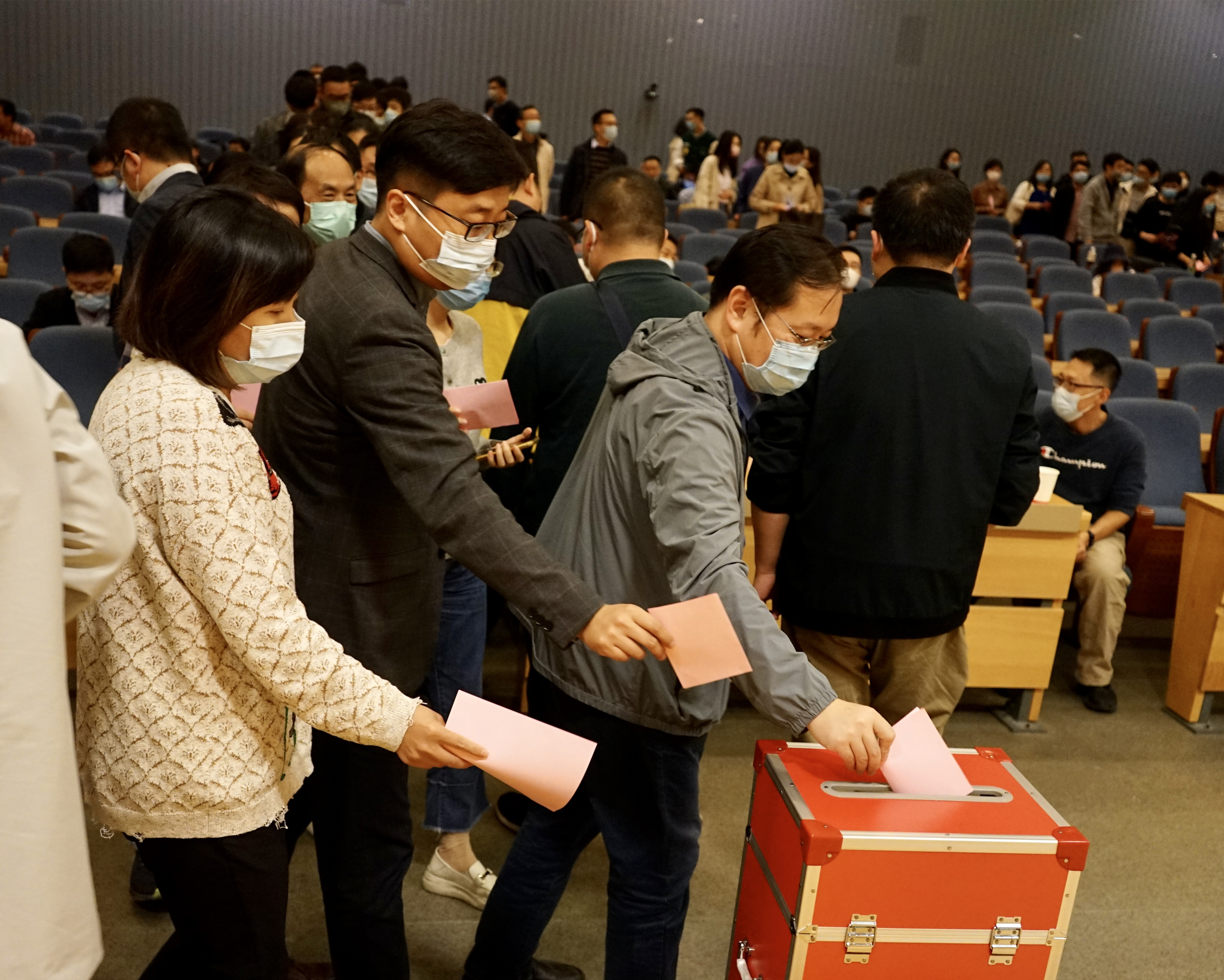 大会在雄壮的国歌声中开幕。经理姚和权首先作《yl6809永利检测中心yl6809永利检测中心专业技术岗位聘用与考核实施细则》的制定情况说明,从政策背景、制定工作、主要内容、原则特点等方面,对《yl6809永利检测中心yl6809永利检测中心专业技术岗位聘用与考核实施细则》的制定过程进行详细说明。随后,大会表决通过了监票人、计票人名单,在监票人徐云根主持下,全院教职工进行投票表决,经过计票,《yl6809永利检测中心yl6809永利检测中心专业技术岗位聘用与考核实施细则》获得高票通过。