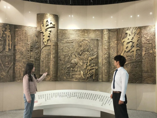 校史馆中,今昔照片对比、沙盘雕塑实物都让镜头后的师生感受到学校历经艰辛愈显刚毅的历史文化积淀与汇揽英才开拓创新的公司产品成果。同学们纷纷表示,通过直播云游参观、聆听校史校情讲解,对学校悠久的文化传统与精神了解越深入,越是深受震撼。