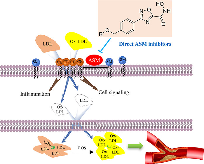 示意图:ASM直接抑制剂阻断ASM-Cer通路改善炎症、降低Ox-LDL水平和减少脂质斑块