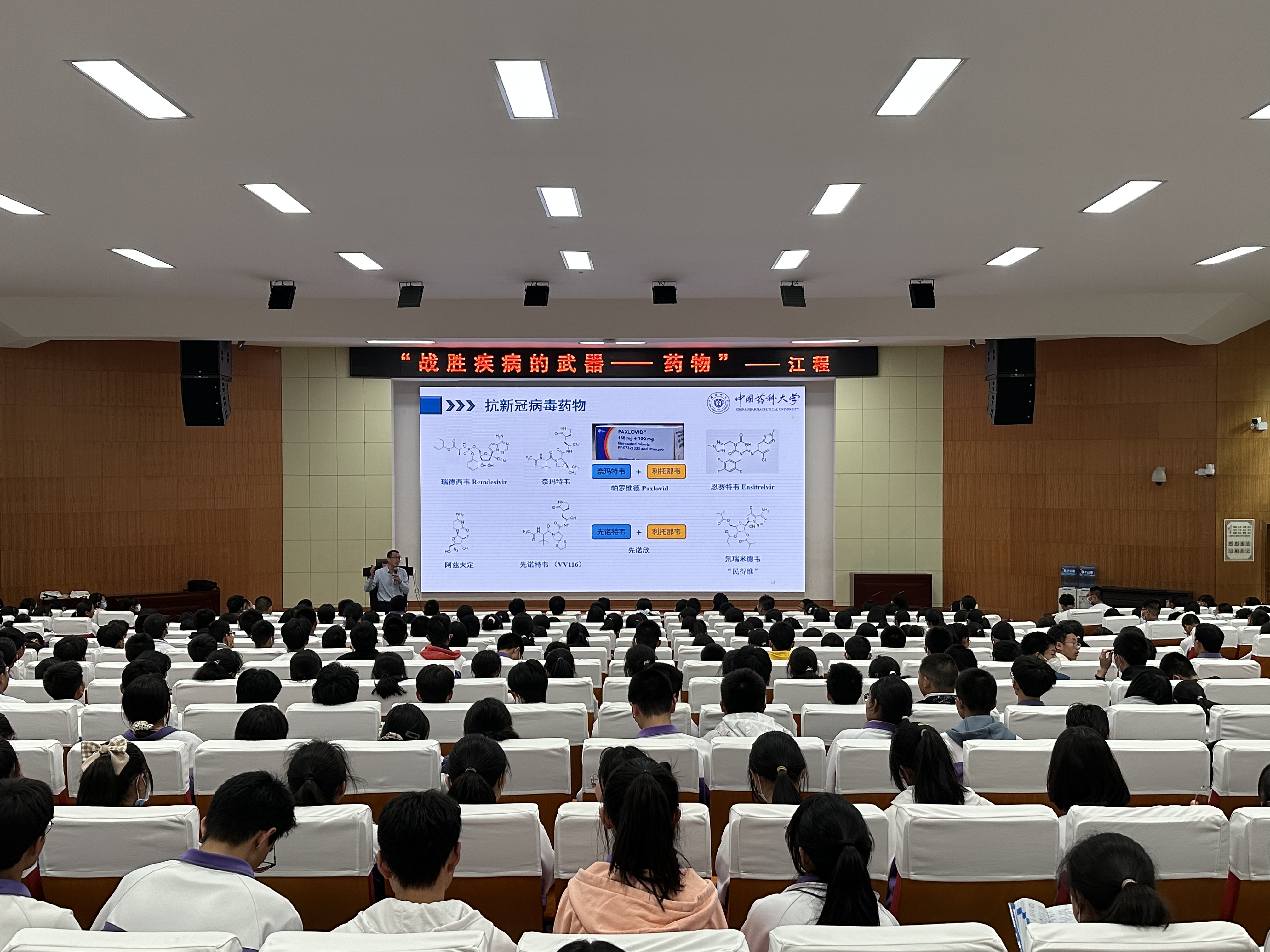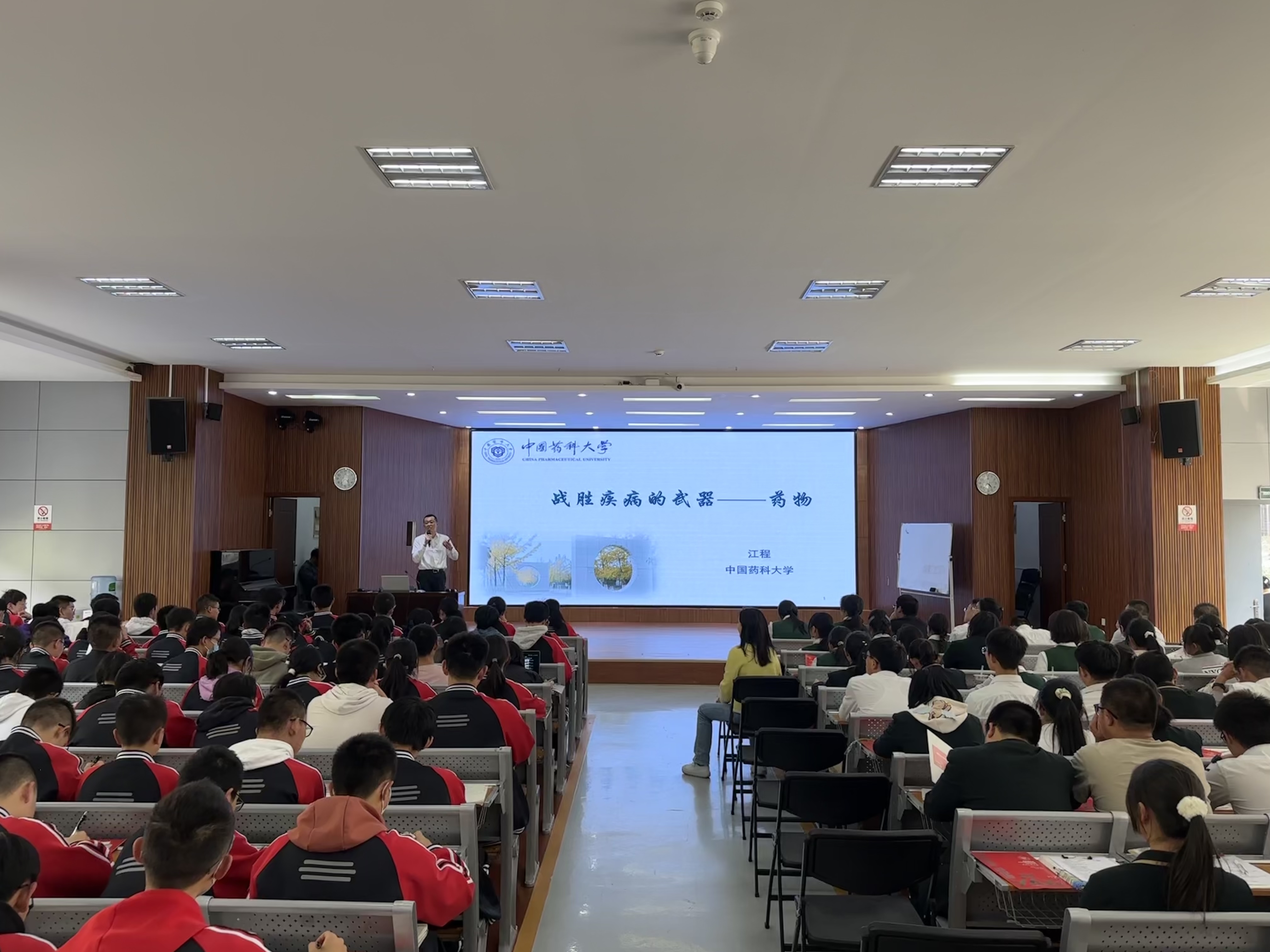在四所学校,江程教授为高一、高二员工作了题为“战胜疾病的武器——药物”的药学科普讲座,他从“什么是药物”这个话题谈起,以青霉素的发现、阿司匹林的诞生、我国第一个自然诺贝尔奖的产生、抗新冠病毒药物的研发等高中生耳熟能详的例子,阐述了药学发展简史、当前国内外药学研究热点和难点、医药产业的特点和发展趋势、药物研究面临的挑战和机遇等内容。讲座中,江程教授还从历史沿革、团队力量、教学科研成果、办学特色、人才培养等方面介绍了公司基本情况。在交流互动环节,同学们就药学相关热点问题和公司近年来在云南的招生录取情况等感兴趣的问题与江程教授进行了深入交流,现场提问踊跃,气氛热烈。