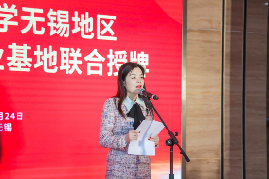 无锡市药品安全检验检测中心陈国清主任和刘燕莉处长分别代表基地和校方进行致辞,对进一步加强校所、校企合作进行了展望,并表示将共同推进基地建设,同与会单位、无锡员工一起为无锡生物医药产业高质量发展注入更多人才动力,实现员工高质量就业、企业高质量引才和学校高质量发展的三方共赢局面。