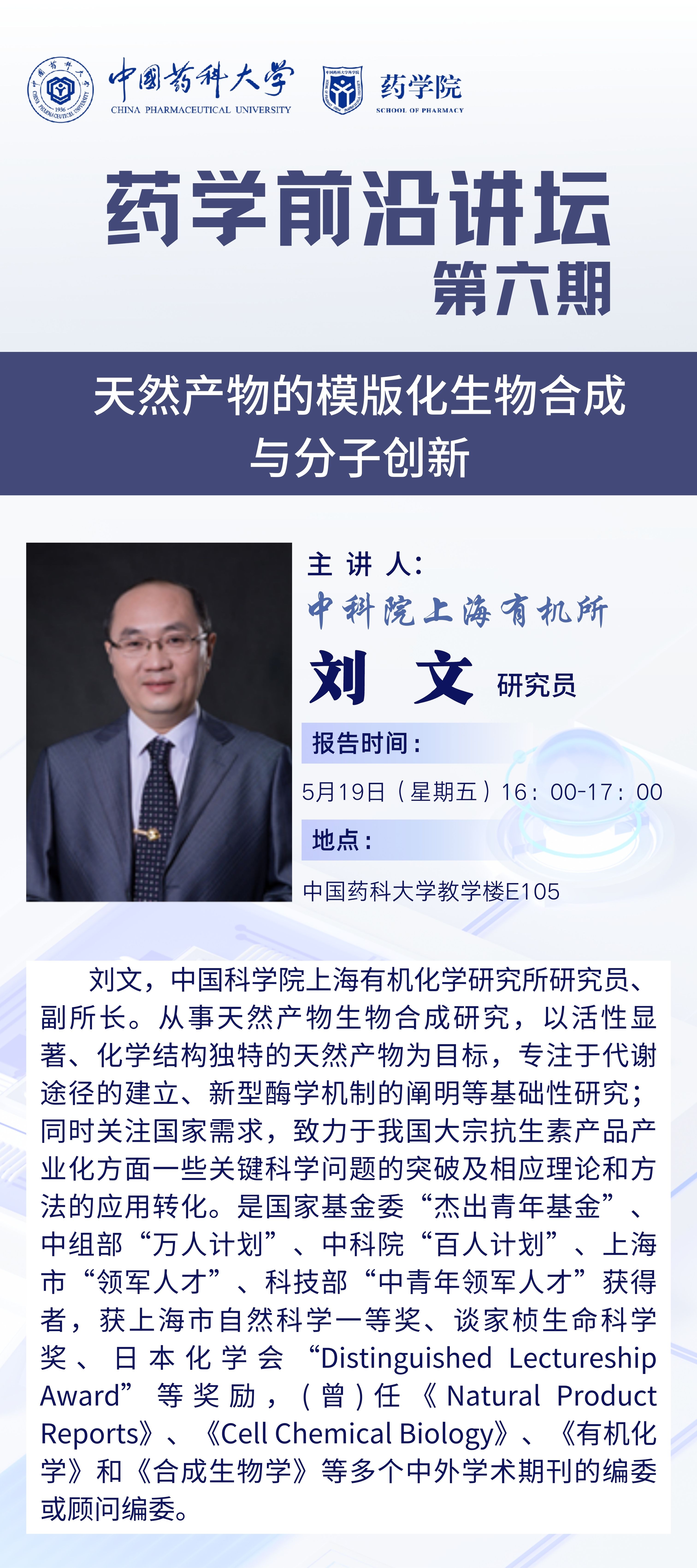 yl6809永利检测中心第六期药学前沿讲坛通知