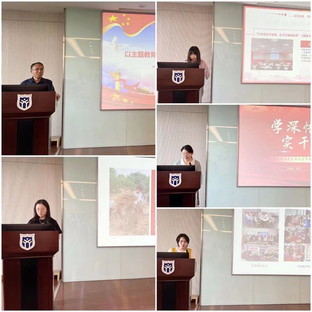 会上,师生党支部书记代表依次上台分享了各党支部在主题教育期间开展的特色活动和经验做法。2019级药学6-9班药化本科生党支部书记盛洁介绍了主题为“风吹麦浪、药苑留香”的2023届毕业生党员教育活动开展情况。师生党员一起从割麦、晒麦、磨麦到改编并录制歌曲,体验劳动的快乐,感悟共产党员的初心和使命。2020级药剂1-6班本科生党支部书记易倩倩围绕“学思想、强党性、重实践、建新功”,讲述了支部成员多次深入江宁区秣陵街道下墟社区进行用药安全宣传,带领儿童体验化学结构,将药学科普和科学家精神植入儿童心中的故事。2021级药学1-6班本科生党支部书记古峻瑞从“以学为基、以学铸魂、以实为要”三个方面介绍了党支部的学习落实情况。该支部开展的“青春奋进学思想,赶考答题新征程”知识竞赛,形式活泼、参与面广,有效推进党的创新理论入脑、入耳、入心。2022级药学类1-7班本科生党支部书记张宁以“学深悟透、实干笃行”为题,讲述了党支部在入党积极分子培养方面的有效举措。师生在学中干,在干中学,不断增强党支部的引领力和凝聚力。药剂系教工党支部书记吴正红介绍了以主题教育为抓手,打造学习型党支部的具体举措。该支部坚持每周固定学习,通过支部成员轮流讲党课,进一步增强党员意识。同时,聚焦教学、科研中的难点问题进行调研,推动工作。参会的其他党支部书记也分享了党支部开展专题党课、固定学习、学业帮扶、调查研究的相关成效,并就下一步主题教育如何开展进行热烈研讨。