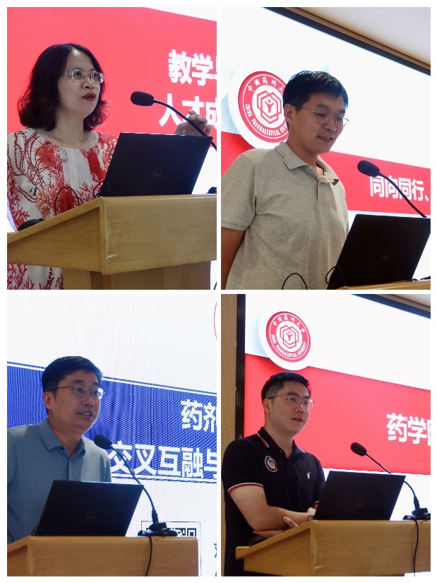 姜正羽教授以“同向同行,共同前进”为题,从科研的角度以自身课题研究举例如何准确定位学科方向,以幽默诙谐的方式指导青年教师如何尽早获得“第一桶金”,他希望大家积极参加学术活动、立足自身研究特色,坚持不懈申请各类基金项目,从失败中找经验,在不足中谋发展,更好地完成科研工作者的身份转换。刘东飞教授基于自身科研经历,以药剂学学科特点为切入点,和大家分享如何凝练科学问题,如何高效进行开发、缩短制剂工期、进行工程应用,将学科特点与生产工艺紧密连接。他表示科研工作要坚持不懈探索,以“十年磨一剑”的恒心和毅力展开科学研究。王磊副教授从课题研发困境入手,通过创新药物的应用转化研究、靶向小分子药物的结构优化、候选药物的专利授权、封面文章的发表等几个方面回顾了团队的研究历程,并对青年教师提出“明确方向、了解规则、知己知彼、自我反思”等建议。与会师生纷纷发言交流,四位老师给予了细心指导,现场气氛浓厚,互动效果热烈。