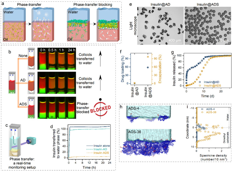 Recently, Prof. Dongfei Liu's team further found that amphiphilic polymer molecules with interfacial activity could form a robust interfacial film at the oil-water interface. The robust interfacial film could efficiently block the contact between colloidal particles with large spatial and the oil-water interface. The phase transfer of particles from the oil phase to the water phase was jammed, achieving high drug loading degree (up to 58.3 wt%) with efficient encapsulation (>95%). This study focused on the interaction between colloidal particles and the interfacial film formed with the self-assembled amphiphilic polymer molecules. This research systematically investigated the influence of polymer molecular structure on the structure and properties of the interfacial film by experiments and molecular dynamics simulations.