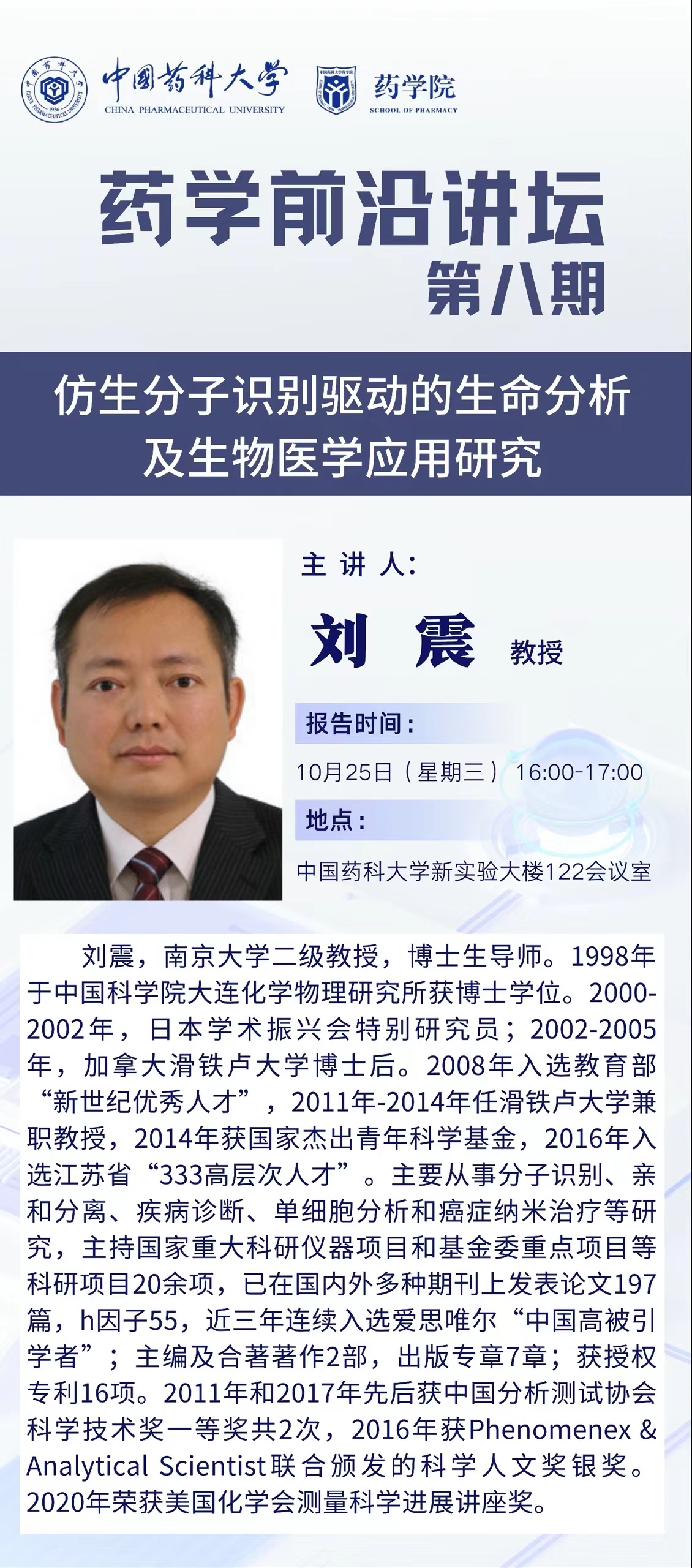 yl6809永利检测中心第八期药学前沿讲坛通知
