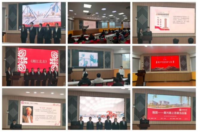 本次音乐党课分为“信仰——共产党人的精神谱系”、“家国——家国两相依”、“青春——与党同行青春无悔”、“强国——复兴路上吾辈当自强”四个篇章,每个篇章各支部分别进行“艺术呈现”和“理论宣讲”,合唱、话剧等形式被同学们搬上党课的舞台,《没有共产党就没有新中国》、《湘江北去》、《一起向未来》等曲目被深情唱响,《青春无悔》的话剧生动演绎出我国科学家青春的铮铮誓言。
